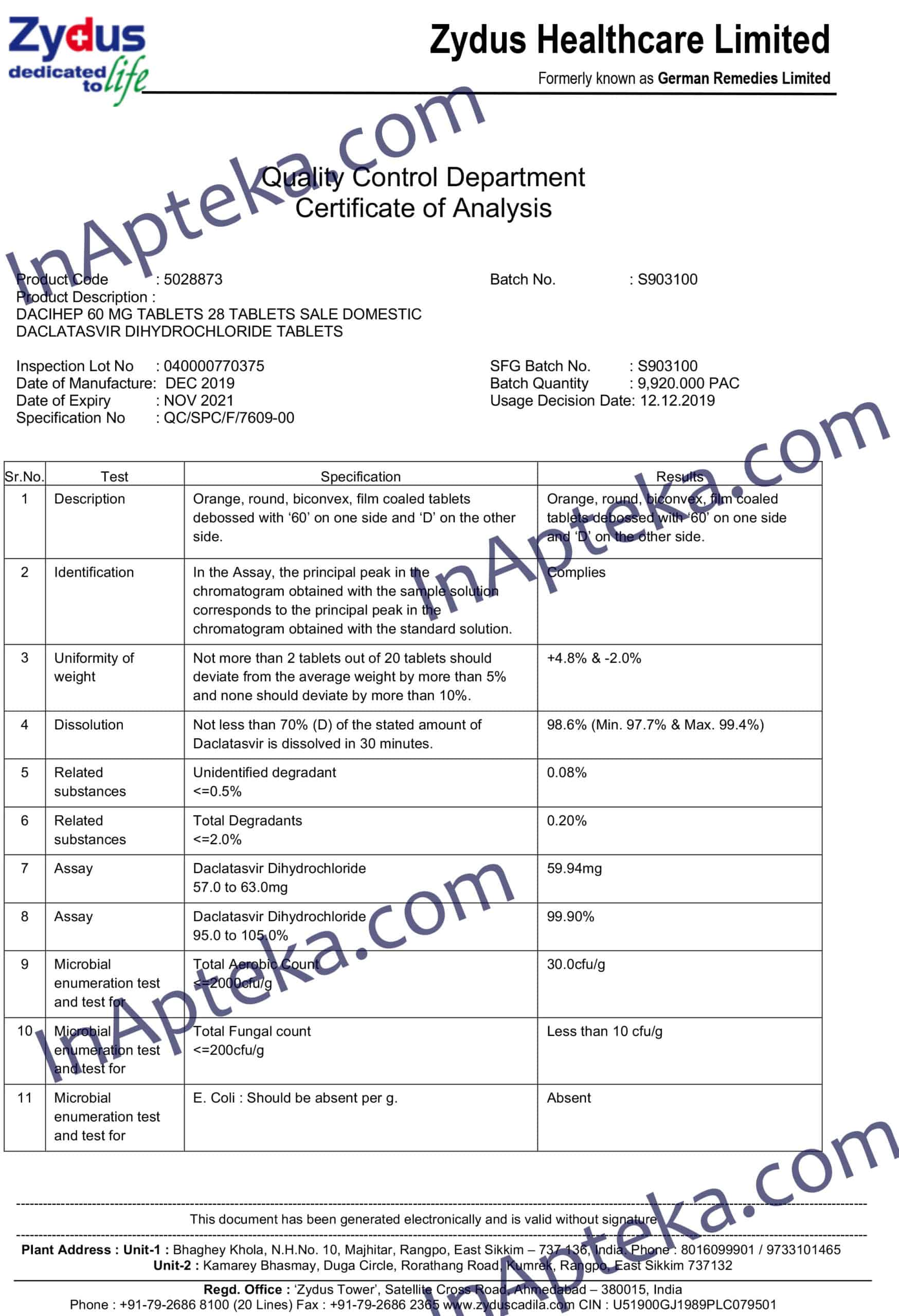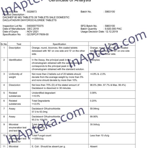 Категория: Гепатит С, Даклатасвир (Даклинза)