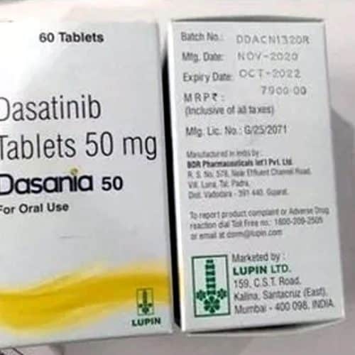 Таблетка Dasania 50 мг действует, предотвращая сигнализацию аномального белка о росте раковых клеток. Это помогает предотвратить или уменьшить распространение раковых клеток.
