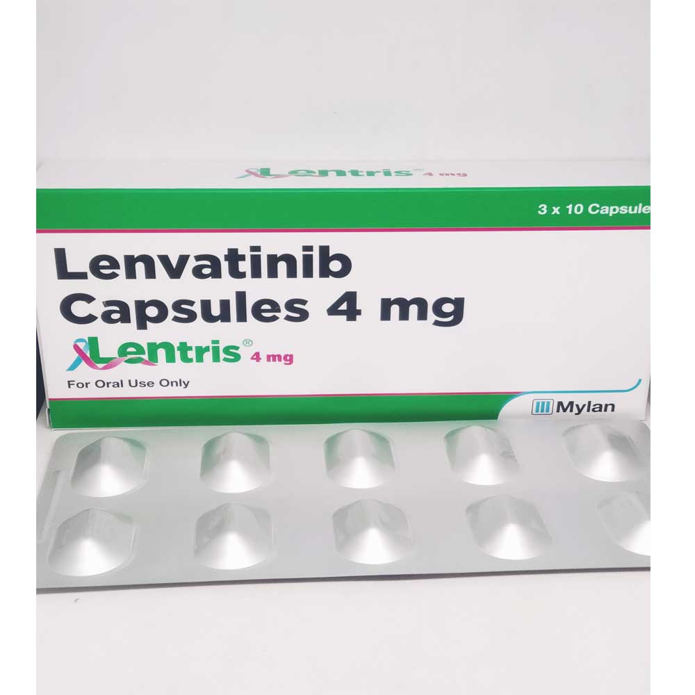 Капсулы Lentris 4 мг состоят из активного ингредиента Lenvatinib. Это ингибитор тирозинкиназы, показанный при прогрессирующем или запущенном раке щитовидной железы, когда терапия радиоактивным йодом неэффективна. Он также используется для лечения ранее не леченных пациентов с раком печени, которым не показано хирургическое лечение. Анапластическая карцинома щитовидной железы (прогрессирующий рак щитовидной железы) обычно возникает у пациентов старше 60 лет. Она характеризуется увеличенной и твердой щитовидной железой и осиплостью голоса из-за паралича нерва в голосовом аппарате. Гепатоцеллюлярная карцинома (рак печени) развивается из-за уже существующих заболеваний печени, таких как цирроз или хронический гепатит B. Пациентам, у которых была аллергическая реакция на капсулы Lentris 4 мг или любой из их компонентов, не следует принимать это лекарство. Пациентам следует сообщить своему стоматологу или хирургу-стоматологу, что они принимают капсулы Lentris 4 мг, так как это может ухудшить заживление ран и повысить риск кровотечения.