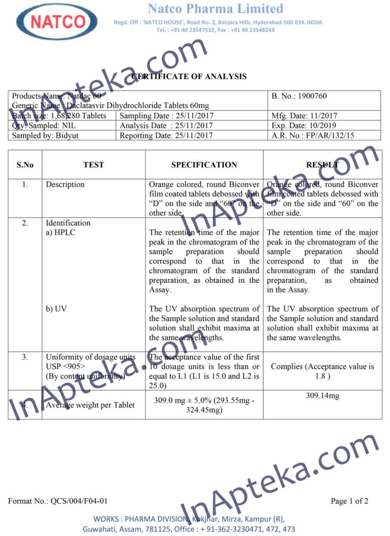 Категория: Гепатит С, Даклатасвир (Даклинза)